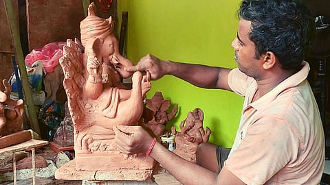 Ganesh Chaturthi : निसर्गपूजा करणे हे प्रत्येकाचे कर्तव्य आहे. त्यासाठी गणेशभक्तांनी केवळ चिकण मातीपासून केलेल्या गणेश मूर्तीचे पूजन करावे. जेणेकरून मातीची अर्थात निसर्गाची सेवा करू शकतो, असे मत दांडोसवाडा मांद्रे येथील 55 वर्षापासूनची गणपतीची चित्रशाळा चालवणाऱ्या श्याम, राम आणि अनिल असोलकार या तिघा बंधूंनी व्यक्त केले.