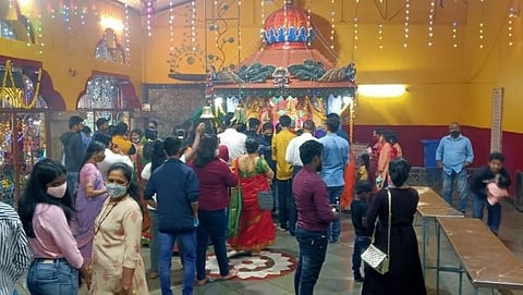डिचोली: श्री देवीचा जयघोष, पालखी मिरवणूक, स्वरधारांची बरसात आणि हजारो भक्तगणांच्या साक्षीत डिचोलीतील (Bicholim) श्री शांतादुर्गा देवीच्या 'नवा सोमवार' उत्सवाला मंगल आणि भक्तीमय वातावरणात उत्साहात प्रारंभ झाला आहे. डिचोलीतील 'नवा सोमवार' संपूर्ण गोवा तसेच राज्याबाहेर प्रसिद्ध आहे. गावकरवाडा येथील श्री शांतादुर्गा देवस्थानात शांतादुर्गा देवस्थान ग्रामस्थ गावकर मंडळ ट्रस्टतर्फे तर आतीलपेठ येथील मठ मंदिरात आतीलपेठ दहाजण बाजारकर मंडळ नवा सोमवार उत्सव समितीतर्फे हा उत्सव साजरा करण्यात येत आहे. नवा सोमवार उत्सवानिमित्त दोन्ही मंदिरात सकाळपासून दिवसभर विविध धार्मिक विधी पार पाडण्यात आले. दुपारी आरती आणि तीर्थप्रसाद झाला.