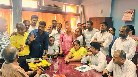 सार्वजनिक बांधकाम खात्याच्या आल्तिनो येथील मुख्य कार्यालयात काँग्रेस प्रदेशाध्यक्ष अमित पाटकर यांच्या अध्यक्षतेखालील शिष्टमंडळाने गुरुवारी मुख्य अभियंता संतोष म्हापणे यांना घेराव घातला. याप्रसंगी काँग्रेसच्या कार्यकर्त्यांनी त्यांच्यावर प्रश्नांचा भडिमार केला.