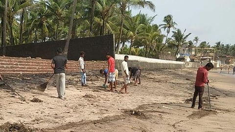 शिवोली: बार्देशातील हणजुण तसेच वागातोर येथील समुद्र किनार्यावर तेल तवंगाचे गोळे साचल्याने किनारा पुर्णपणे काळवंडून गेला होता त्यामुळे पर्यटक तसेच स्थानिक लोकांनी गेले दोन दिवस याभागात येणे टाळले होते, मात्र याबाबतीत सरकारच्या मदतीची वाट न पाहाता स्थानिक पंचायत मंडळाने सरपंच सावियो आल्मेदा यांच्या पुढाकाराने येथील किनार्याची साफसफाई (Cleaning) केली व किनारा पर्यटकांसाठी (Tourists) पुर्ववत खुला केला. पंचायत मंडळाने याकामात घेतलेल्या पुढाकाराबद्दल स्थानिकांनी समाधान व्यक्त केले असून इतरांसाठी एक चांगले उदाहरण असल्याचे स्थानिक सुभाष नाईक यांनी सांगितले.
