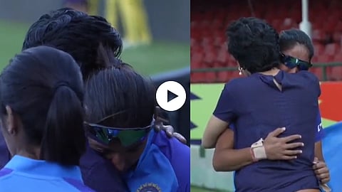 याचदरम्यान तिचे भारताची माजी क्रिकेटपटू आणि सध्याची समालोचक अंजूम चोप्राने सांत्वन करण्याचा प्रयत्न केला. यावेळी हरमनप्रीतला अचानक रडू कोसळले आणि ती अंजूम चोप्राच्या गळ्यात पडून ओक्साबोक्शी रडली. यावेळी भारतीय संघातील हर्लिन देवोल देखील तिथे होती. या भावनिक क्षणाचा व्हिडिओ आयसीसीने सोशल मीडियावर शेअर केला आहे.