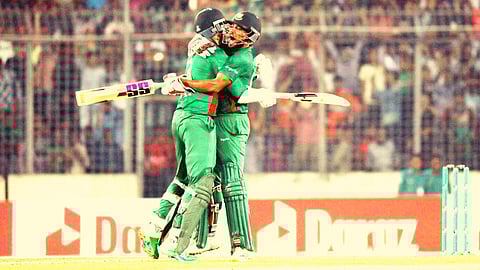 अखेरच्या 13 चेंडूत 13 धावा हव्या असताना तस्किन फलंदाजीला आला. त्यावेळी नजमुल फलंदाजी करत होता. 19 व्या षटकात नजमुलने पहिल्या तीन चेंडूंवर 7 धावा काढल्या. त्यानंतर तस्किनने सलग दोन चौकार ठोकत बांगलादेशच्या विजयावर शिक्कामोर्तब केले. बांगलादेशने 18.5 षटकात 6 बाद 120 धावा केल्या. नजमुल 46 धावांवर नाबाद राहिला, तर तस्किन 8 धावांवर नाबाद राहिला.