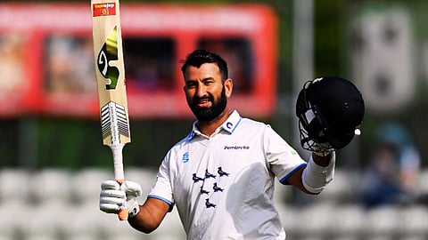 Cheteshwar Pujara Century: भारतात एकिकडे आयपीएलचा रोमांच सुरू असताना चेतेश्वर पुजारा इंग्लंडमध्ये काऊंटी चॅम्पियनशीप स्पर्धेत खेळत आहे. त्याने या स्पर्धेत त्याची अविश्वसणीय लय कायम ठेवताना पुन्हा एकदा दमदार कामगिरी केली आहे. त्याने ससेक्स संघाचे नेतृत्व करताना चालू हंगामात तिसरे शतक साकारले आहे.