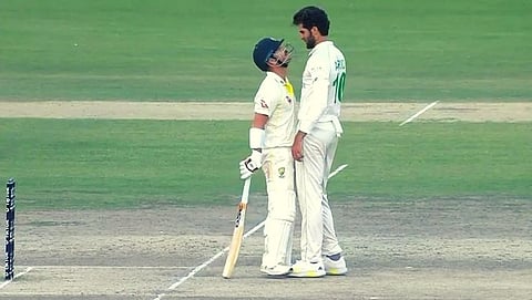 पाकिस्तान (Pakistan) आणि ऑस्ट्रेलिया (Australia) यांच्यातील तिसरी कसोटी लाहोरमध्ये पाहायला मिळाला. पाकिस्तानने तिसऱ्या दिवशी खराब बॅटींग केली आणि अवघ्या 20 धावांतच त्यांनी शेवटचे सात विकेट्स ही गमावले. यानंतर ऑस्ट्रेलियाने आपला दुसरा डाव सुरू केला तेव्हा डेव्हिड वॉर्नर (David Warner) आणि शाहीन शाह आफ्रिदी (Shaheen Afridi) यांच्यामध्ये जबरदस्त सामना झाला. (David Warner and Shaheen Shah Afridi were seen making fun of each other in Lahore)