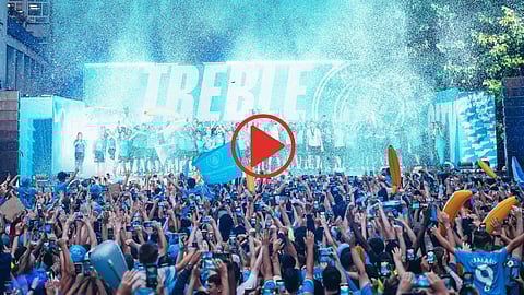 Fans and Players of Manchester City Club celebration: इंग्लिंश फुटबॉल क्लब मँचेस्टर सिटीने नुकतेच UEFA चॅम्पियन्स लीगचे विजेतेपद मिळवले. यानंतर मँचेस्टर सिटीचा संघ त्यांच्या घरी म्हणजेच मँचेस्टरला पोहचला. यावेळी चाहत्यांकडून त्यांचे मोठ्या उत्साहात स्वागत झाले.