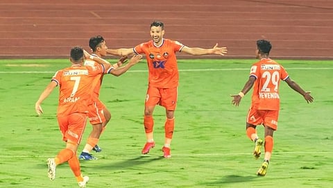 पणजी: सामना संपण्यास आठ मिनिटे बाकी असताना स्पॅनिश स्ट्रायकर होर्गे ओर्तिझ याचा ‘लाँग रेंजर’ फटका भेदक ठरला व या निर्णायक गोलमुळे एफसी गोवाने इंडियन सुपर लीग (आयएसएल) स्पर्धेच्या आठव्या मोसमात डेरिक परेरा यांच्या मार्गदर्शनाखाली पहिला विजय नोंदविला. बांबोळी (Bambolim) येथील ॲथलेटिक स्टेडियमवर शनिवारी रात्री त्यांनी माजी विजेत्या चेन्नईयीन एफसीला 1-0 फरकाने हरविले.