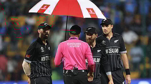 4 नोव्हेंबरला बंगळुरूलाच झालेल्या न्यूझीलंड आणि पाकिस्तान संघात झालेल्या सामन्यातही पावसाचा अडथळा आला होता. त्यामुळे पाकिस्तानने डकवर्थ लुईस नियमानुसार विजय मिळवला होता.