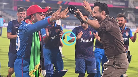 Irfan Pathan Dance with Rashid Khan after Afghanistan's win against Pakistan at Chennai in ICC ODI Cricket World Cup 2023 :