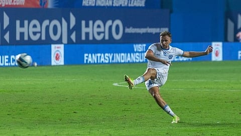 ग्रेग स्टुअर्टने 21व्या मिनिटास गोलक्षेत्राबाहेरून मारलेल्या थेट ताकदवान फ्रीकिक फटक्यावर ओडिशाचा गोलरक्षक कमलजित सिंग याला संधीच दिली नाही. हा प्रेक्षणीय गोल यंदाच्या आयएसएलमधील हा शंभरावा गोल ठरला. नंतर 35व्या मिनिटास स्टुअर्टने यावेळच्या स्पर्धेतील पहिल्या हॅटट्रिकचा मान मिळविला.