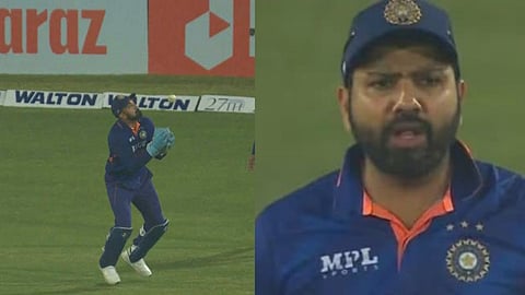 IND vs BAN: बांगलादेश दौऱ्यात भारतीय संघाला पहिल्याच वनडे सामन्यात यजमानांविरुद्ध एका विकेटने पराभवाचा सामना करावा लागला. भारताला या सामन्यात काही झेल सोडण्याचाही फटका बसला. दरम्यान, भारतीय क्षेत्ररक्षकांकडून झेल सुटल्याने कर्णधार रोहित शर्माही वैतागलेला दिसला.