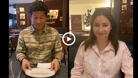 सचिनने शेअर केलेल्या व्हिडिओमध्ये दिसते की तो एका रेस्टॉरंटमध्ये बसला आहे. तसेच त्याच्या हातात एक प्लेट असून त्यावर लिहिले आहे की 'एका घासने तुम्ही कोणाला भेटाल हे तुम्हाला कधीच कळत नाही. (You never know who you'll meet over a slice)'.