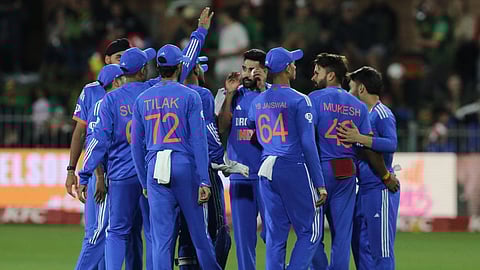 भारत - यशस्वी जयस्वाल, शुभमन गिल, ऋतुराज गायकवाड, तिलक वर्मा, सूर्यकुमार यादव (कर्णधार), रिंकू सिंह, श्रेयस अय्यर, ईशान किशन (यष्टीरक्षक), जितेश शर्मा (यष्टीरक्षक), रवींद्र जडेजा (उपकर्णधार), वॉशिंग्टन सुंदर, रवी बिश्नोई, कुलदीप यादव, अर्शदीप सिंग, मोहम्मद सिराज, मुकेश कुमार आणि दीपक चहर.