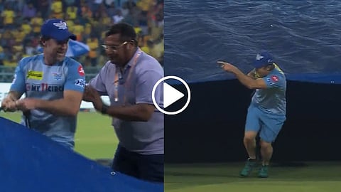 यावेळी लखनऊचा क्षेत्ररक्षक प्रशिक्षक जॉन्टी ऱ्होड्सने ग्राउंड्समनला मदतीचा हात पुढे केला. त्याने त्यांच्याबरोबर ते कव्हर मैदानात ओढत आणले. यावेळी एका सदस्याने त्याला आदराने कव्हर ओढण्याचे काम न करण्यास सांगितले.