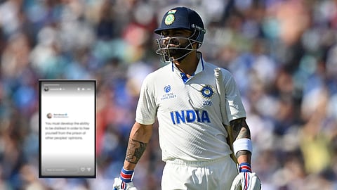 Virat Kohli Cryptic Instagram Story: भारत विरुद्ध ऑस्ट्रेलिया संघात बुधवारपासून (7 जून) कसोटी चॅम्पियनशीप 2021-23 स्पर्धेचा अंतिम सामना इंग्लंडमधील द ओव्हल मैदानावर सुरू झाला आहे. पण या सामन्याच्या दुसऱ्या दिवशी भारताचा माजी कर्णधार विराट कोहली चर्चेचा विषय ठरला होता.