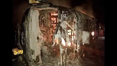 बस सर्वात आधी लोखंडी पोलला धडकली आणि त्यानंतर काही अंतरावर जाऊन बस पलटी झाली. त्यानंतर बसने अचानक पेट घेतला. अपघाताची माहिती मिळताच तत्काळ पोलीस प्रशासन घटनास्थळी दाखल झाले.