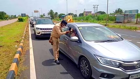 महाराष्ट्र Covid19 Restrictions : कर्नाटक - महाराष्ट्र राष्ट्रीय महामार्गावरील कोगनोळी नजीक असणाऱ्या कर्नाटक सीमा तपासणी नाक्यावर महाराष्ट्र तसेच इतर राज्यातून येणाऱ्या प्रवाशांची आरटीपीसीआर RTPCR चाचणी बंधनकारक केली असून सध्या नाक्यावर तपासणी चालू आहे. रक्षरिय महामार्गावर वाहनाच्या लांब रंगा लागल्याने वाहतूक कोंडी निर्माण झाली आहे.