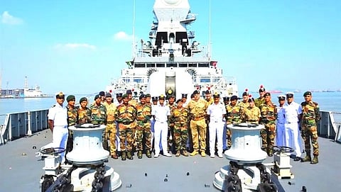 लष्कराच्या तुकड्यांचे सिम्युलेटेड इंडक्शन देखील हाती घेण्यात आले आणि त्यानंतर संयुक्त कमांड ऑपरेशन सेंटरची स्थापना करण्यात आली. त्यानंतर दोन्ही सैन्याने प्रगत हवाई आणि उप-पृष्ठभागावरील सरावांसह समुद्रातील भेटीवर परिणाम केला, असे अधिकारी म्हणाले.