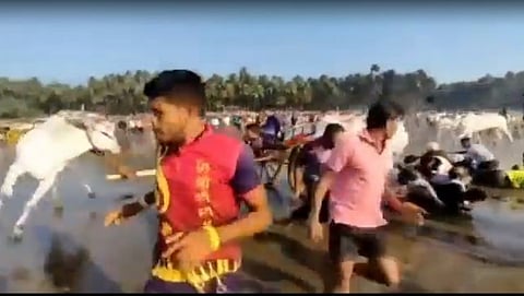 मिळालेल्या माहितीनुसार, मुरुड समुद्रकिनारी (Murud Beach) बैलगाडी शर्यत आयोजित केली होती. या शर्यतीमध्ये बैलगाडी अचानक लोकांमध्ये घुसताना या व्हिडिओमध्ये (Video) दिसत आहे. या घटनेमध्ये बैलगाडी (Bullock cart) अनेक लोकांच्या अगांवरून गेली. यादरम्यान तीन लोक जखमी झाले आहेत. ही बैलगाडीची शर्यत भाजपचे पदाधिकारी शैलेश काते यांच्या वाढदिवसानिमित्त आयोजित करण्यात आली होती. ही शर्यत पाहण्याकरीता मोठ्या संखेने लोक उपस्थित होते.