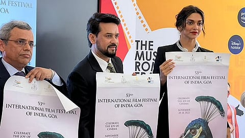 माहिती आणि प्रसारण खात्याचे केंद्रीय मंत्री, अनुराग सिंह ठाकूर यांनी आज, ‘कान चित्रपट महोत्सवा’त, गोव्यात या वर्षी होणाऱ्या 53 व्या ‘भारतीय चित्रपट महोत्सवा’च्या (IIFI) पोस्टरचे अनावरण केले. भारतीय सिनेमा सृष्टीमधील लोकप्रिय अभिनेत्री दीपिका पदुकोण यावेळी हजर होती. (IIFI 53 Goa latest News)