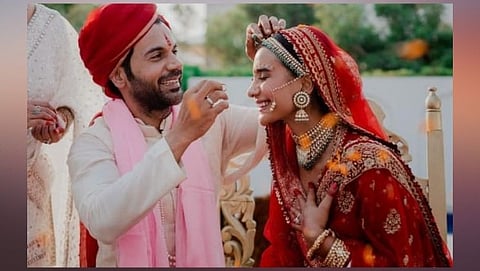 साखरपुड्यासोबतच त्यांचे लग्नही मोठ्या थाटामाटात पार पडले. राज कुमार राव ऑफ-व्हाइट शेरवानीमध्ये दिसत आहे, तर त्याची जोडीदार पत्रलेखा लाल वेडिंग ड्रेसमध्ये दिसत आहे. चाहत्यांसोबतच सेलेब्स देखील अभिनेत्यांच्या लग्नामुळे आनंदात आहेत.
