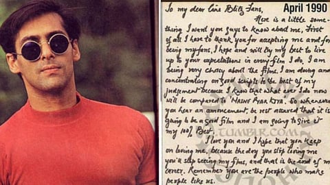 बॉलिवूडचा दबंग सलमान खान याने कालच आपला 57 वा वाढदिवस साजरा केला त्यानिमित्ताने सलमानने स्वहस्ते लिहलेलं एक पत्र सध्या सोशल मिडीयावर व्हायरल होत आहे. हे पत्र सलमानने 1990 साली लिहलं होतं. 'मैने प्यार किया'च्या मिळालेल्या यशानंतर सलमानने हे पत्र लिहुन चाहत्यांचे आभार मानले होते