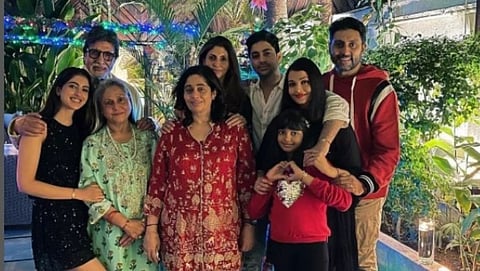 बॉलीवुडचे जेष्ठ अभिनेते अमिताभ बच्चन (Amitabh Bachchan) यांचे एक वैयक्तिक आयुष्य आहे. आपल्या बॉलीवुड (Bollywood) जगात काम करत असताना त्यांच्या फॅमिली टाइमसुद्धा ते एंजॉय करतात. बच्चन कूटूंबाचे एक वेगळे स्टेटस आहे. त्यामुळे हे कूटूंब (Bachchan Family) नेहमी चर्चेत असते. त्यांच्या फॅमिलीबद्दल जाणून घेण्यासाठी फॅन्स खूप उत्सुक असतात. आणि या फॅमिलिचे वैशिष्ट्य म्हणजे एकाच फॅमिलीमध्ये अनेक सुपरस्टार अहेत. या दरम्यान बच्चन कूटूंबाचा एक फोटो सध्या सोशल मिडियावर व्हायरल होत आहे. हे फोटो व्हायरल होताच बच्चन फॅन्सनी क्रियेटिव्ह कमेंट करायला सुरवात केली.